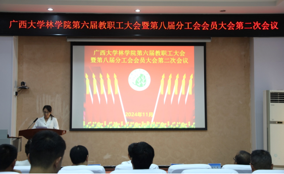 院党委书记符韵林作学院经费收支情况报告并发表总结讲话。他强调,要将科研教学成果作为工作的重心,在未来的发展方向中,需锚定新葡的京官网学科专业特色,提高学科核心竞争力,发挥师生的主观能动性,加快科技成果落地,全面提升学院整体的科研、教学水平和社会服务能力。随后,符书记提出三点要求,一是要紧密围绕学院定位,强化社会责任感,为广西林业的发展提供坚实的人才与科技支撑;二是要增强工作主动性,明确目标,各司其职,在扎实做好日常工作的同时,努力追求标志性发展成果;三是要坚定信心,不懈奋斗,借助广西林业产业蓬勃发展的优势,以及学院内部和谐团结、争先创优的文化氛围,持续推动科技创新与林业发展的深度融合,实现学院繁荣与产业发展的共同进步。