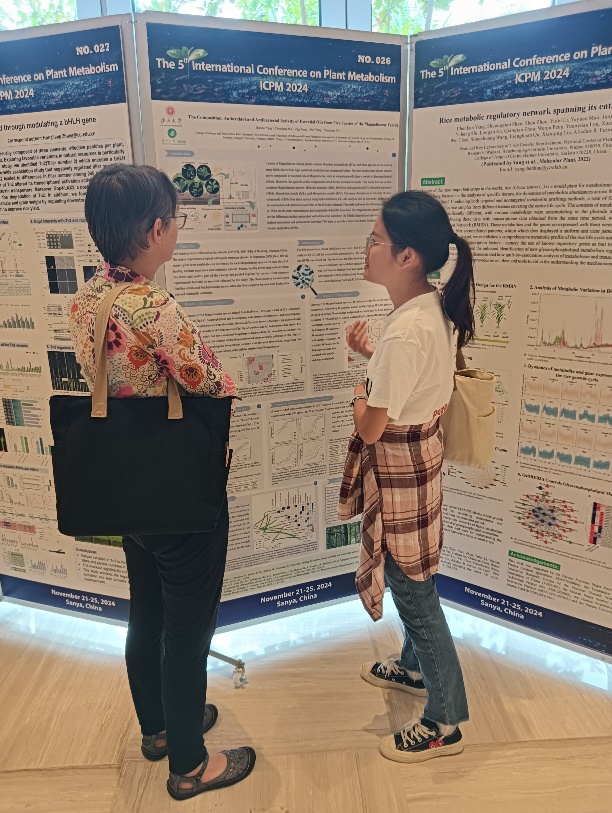 2024年11月21日—25日,第五届植物代谢国际会议(the 5thInternational Conference on Plant Metabolism,ICPM 2024)在海南省三亚市召开。本届会议以“植物代谢与设计育种”为主题,设有代谢组学和多维组学、合成生物学、萜类/酚类物质的生物合成与调控等13个专题,对植物代谢基础理论研究、方法研究、育种应用等相关领域前沿研究进展及未来发展方向进行了研讨。新葡的京官网杨梅教授指导的2023级博士研究生马道承、徐圆圆老师指导的2022级硕士研究生杨丹丹报名参加本次会议。