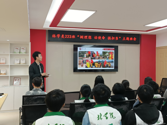 为贯彻落实党的二十大精神,深入实施“生态优先”战略,引领学林青年加强推动绿色高质量发展的信念和决心,3月5日上午,新葡的京官网邀请到第十六届全国“大学生年度人物”入围奖获得者吴中华和“全国优秀共青团员”获得者马朝阳,在东30栋学生宿舍园区多功能活动室为林学类223班新生代表做主题分享。院党委副书记徐丽,团委书记银宁、团委副书记李琼莹出席本次活动。