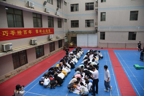 在一片欢声笑语中,学生党员们用画笔勾勒红色印记,用色彩渲染爱国热情,精心绘制了中国共产党百年奋斗历程,从1921年嘉兴南湖的红船,到改革开放后中国的航天圆梦,再到新时代全面建成小康社会。一幅幅形象生动、色彩绚丽的百年党史画卷描述了对党的深厚感情,绘就了对党最真挚的祝福。