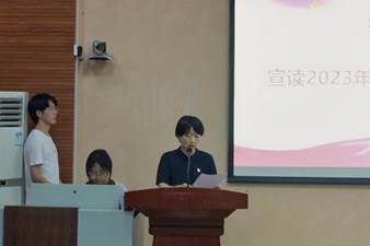 5月14日下午,新葡的京集团8814登录入口分党校2024年春季培训班开班仪式暨2023年秋季培训班毕业典礼在新葡的京集团8814登录入口112报告厅顺利举办。院党委书记符韵林老师,党委副书记徐丽老师,团委书记李琼莹老师,辅导员孙静老师、黄思棉老师出席本次活动。活动由曹琦主持,仪式在全体起立奏唱国歌的歌声中拉开序幕。